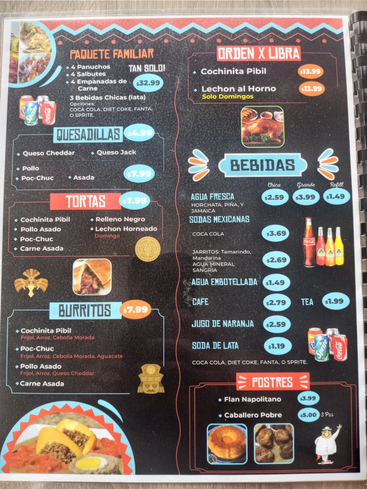 If you're dining with family, don't miss out on the Family Pack, which includes four panuchos, four salbutes, four meat empanadas, and four small drinks for only $34.99—a perfect way to experience multiple tastes in one go.